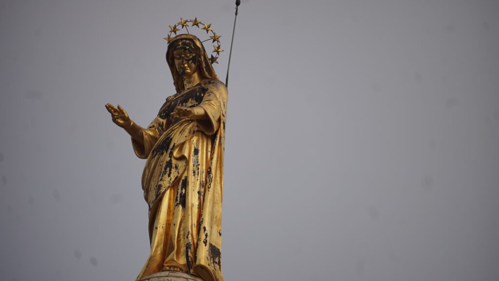 Auch der goldenen Figur auf der Kathedrale Notre-Dame-des-Doms-d’Avignon fehlt beim genaueren Hinsehen erstaunlich viel Gold. Blattvergoldung auf Diät. Ich habe bewusst darauf verzichtet zu recherchieren, ob der Bürgermeister von Avignon eine Yacht in St. Tropez besitzt. Man will sich den Zauber ja nicht völlig zerstören.